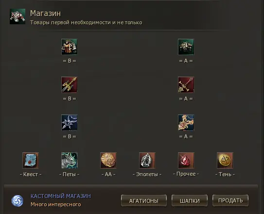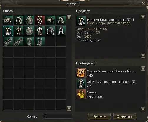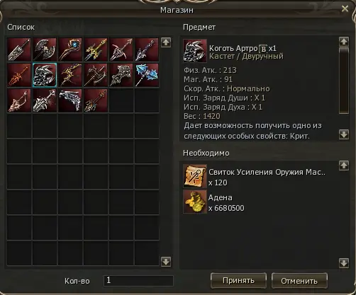 Для покупки А брони/оружия/бижутерии вам потребуется выбить Обычный Предмет и добыть Свиток усиления Оружия Мастера Йоги